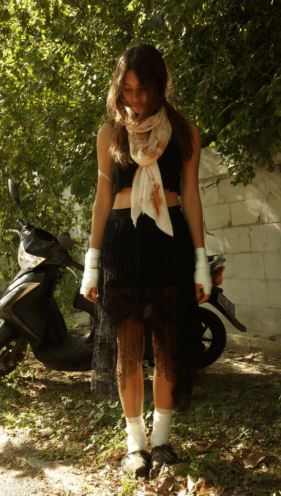 I drizzle the disinfectant I bought only minutes ago over them. With a cotton pad, I do my best to wipe away the sand, clean everything, hold her hand, and talk softly to her. Every time I touch her flesh, I see her magnificent face frown.